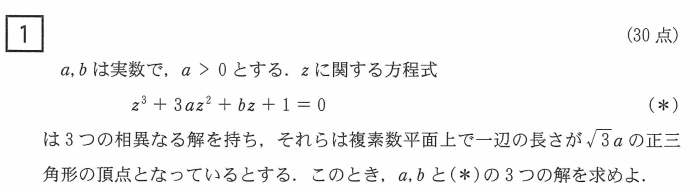 京 都 第1問、第3問 を取り上げました。新3年 生でも複素数については学習済みでしょう。全体的 に昨